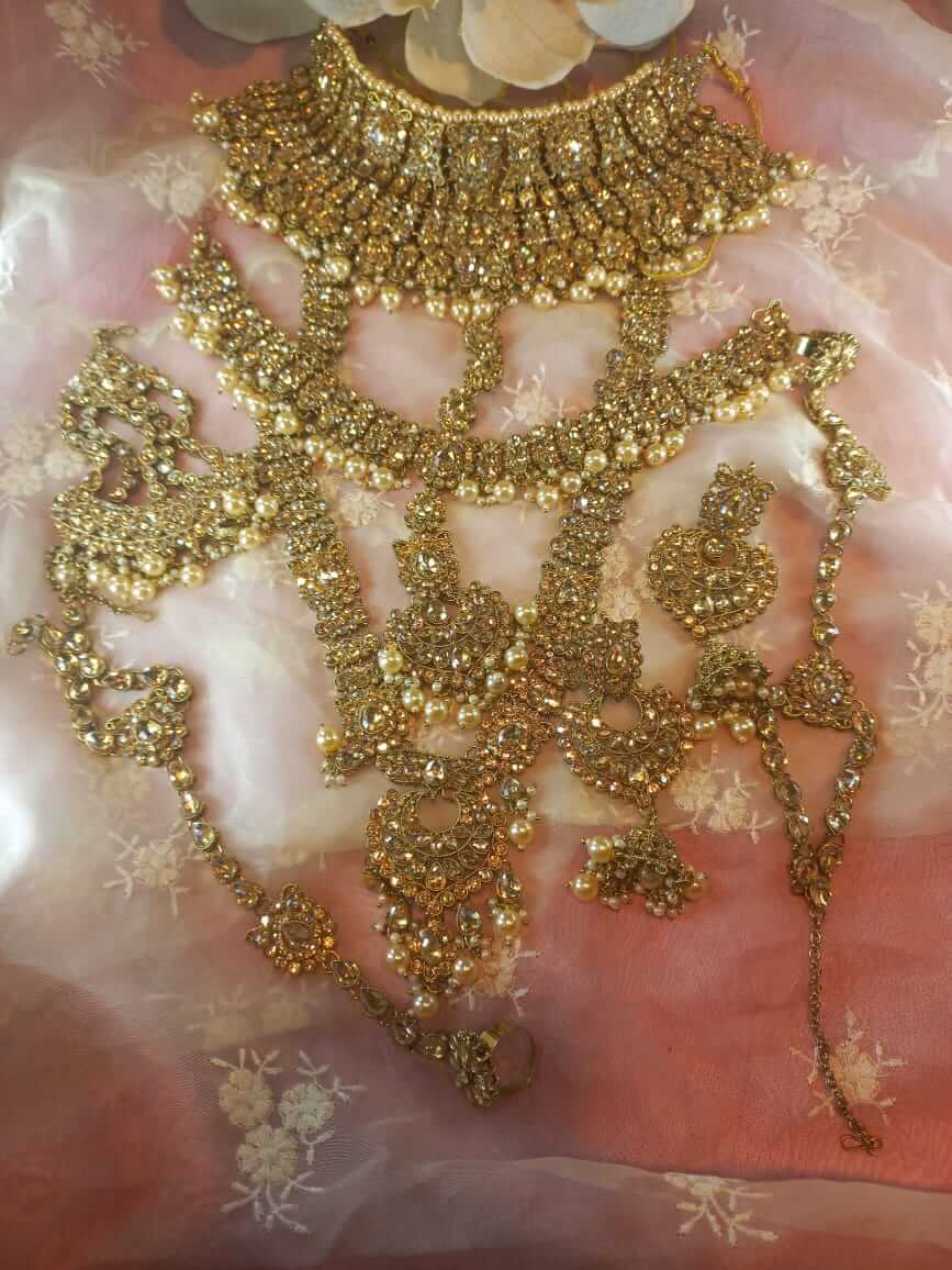 Crystal stoned Light gold bridal set