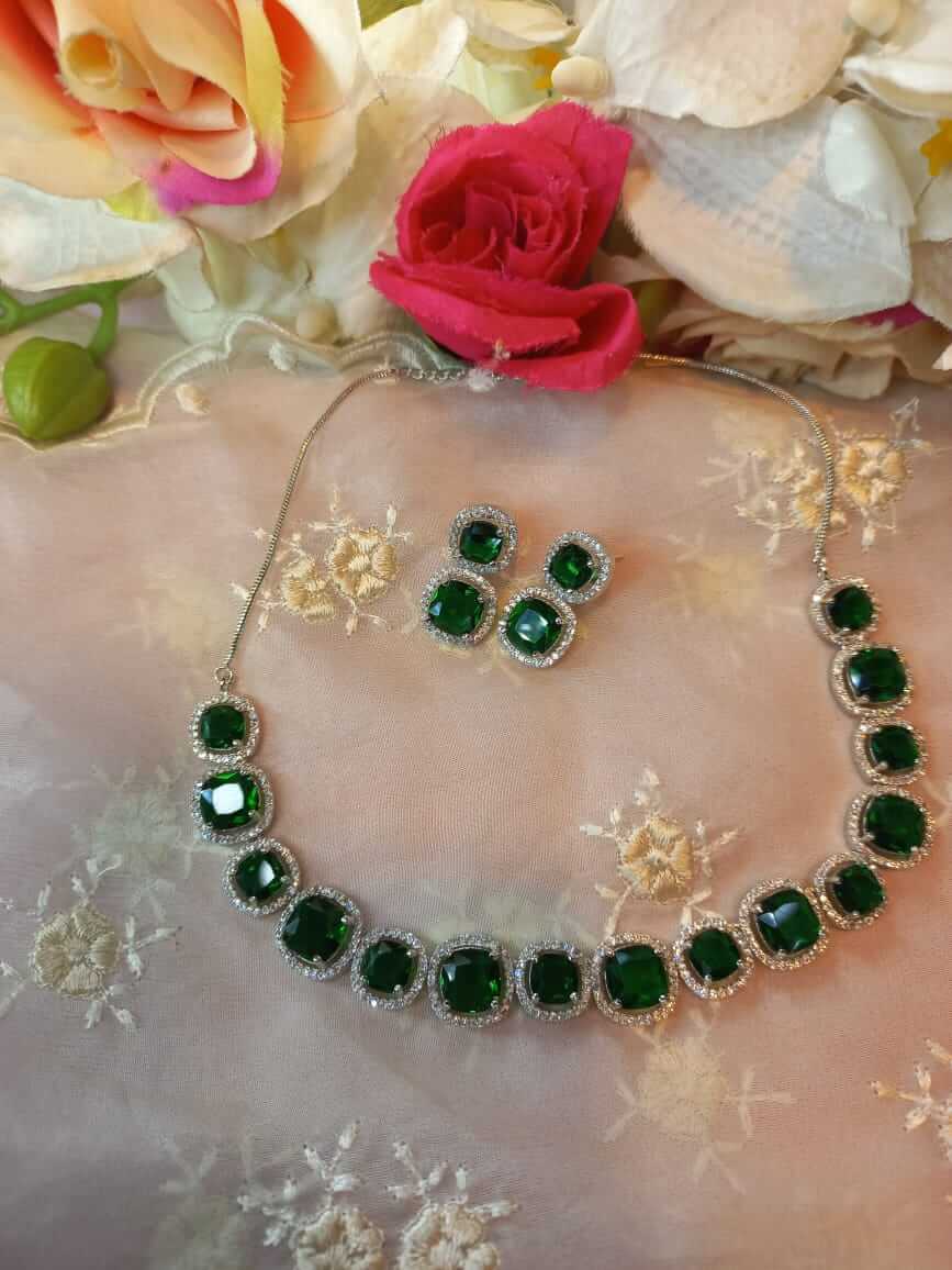 Cubic zirconia with emerald green choker set