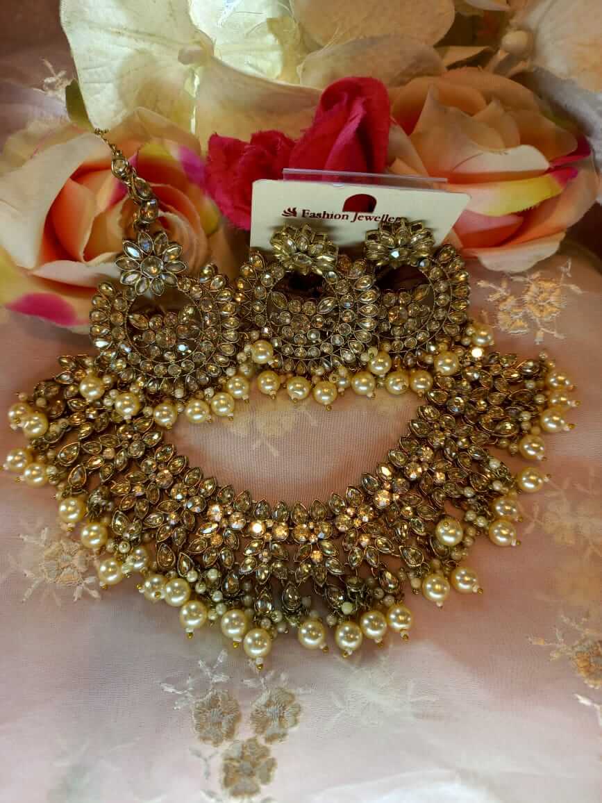 Shine bright with our stunning sets, each piece adorned with sparkling crystals that capture light beautifully. Perfect for weddings and festive occasions, our crystal sets blend modern elegance with traditional charm. Discover the perfect piece to elevate your look.