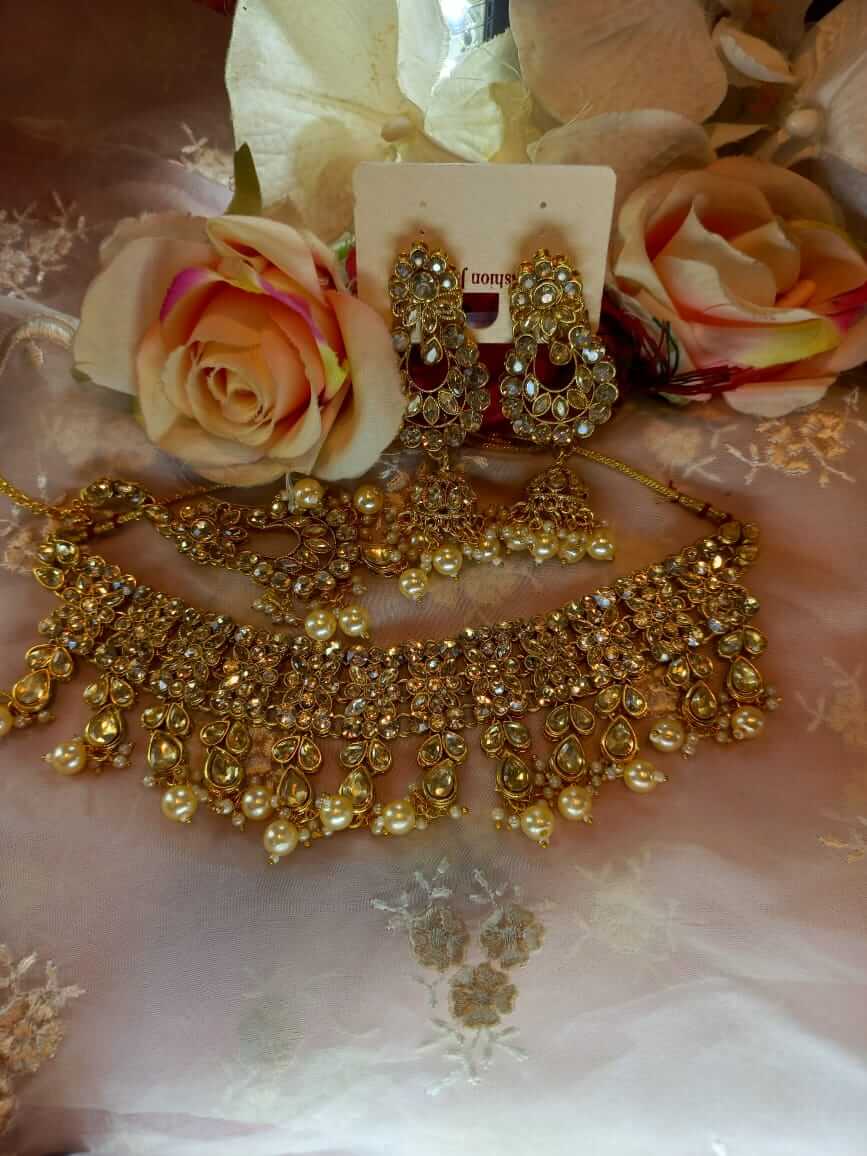 Light gold crystal choker set