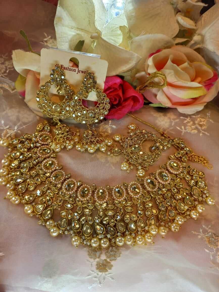 Shine bright with our stunning sets, each piece adorned with sparkling crystals that capture light beautifully. Perfect for weddings and festive occasions, our crystal sets blend modern elegance with traditional charm. Discover the perfect piece to elevate your look.
