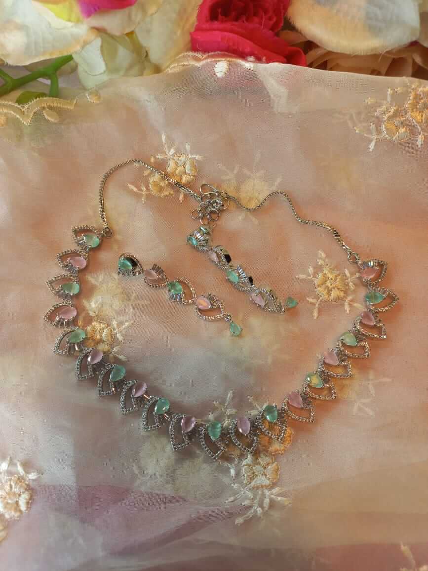 Silver mink with mint green choker set