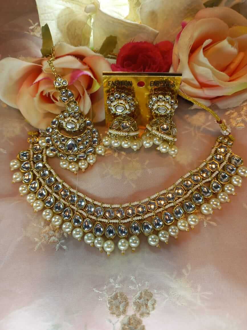 White stoned crystal choker set